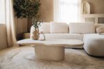 Salontafel Japi belichaamt eigentijds minimalisme met zijn organische vormen en beton ciré afwerking. Deze tafel biedt niet alleen een industrieel en warm tintje aan je interieur, maar is ook krasbestendig en onderhoudsvriendelijk. Verkrijgbaar in diverse maten en perfect op maat aanpasbaar.