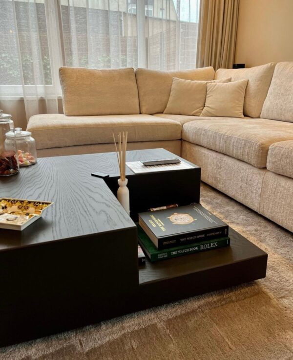 Een opvallend kenmerk van de Ludovico salontafel is de subtiele verlaging aan één hoek, waardoor een prachtig diepteverschil ontstaat dat de visuele aantrekkingskracht versterkt. Deze doordachte ontwerpkeuze voegt niet alleen een artistiek element toe, maar creëert ook extra ruimte voor het tentoonstellen van decoratieve items of het plaatsen van gebruiksvoorwerpen.